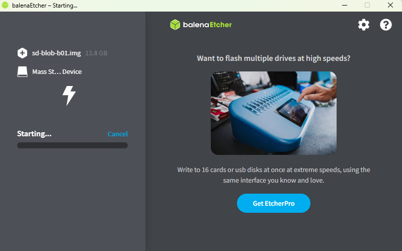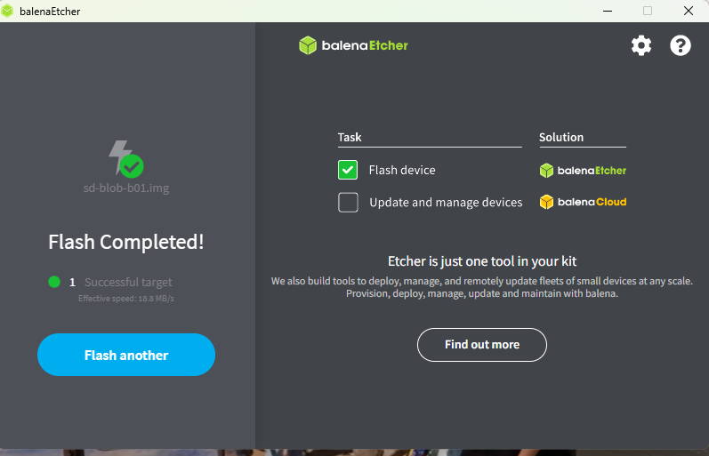 balenaEtcher 를 실행한다.
